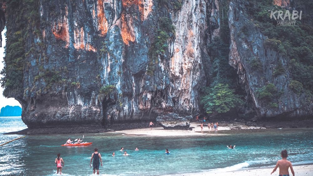 แล้วก็มาถึงหาดถ้ำพระนาง ที่นี่มีชายหาดที่ขาว สวยงาม มีวิวภูเขาหินปูนและหน้าผา เดินไปสุดทางจะเจอกับถ้ำ มีศาลอยู่ด้านซ้ายมือ ที่ล้อมรอบไปด้วยทรายขาวและน้ำทะเลใส