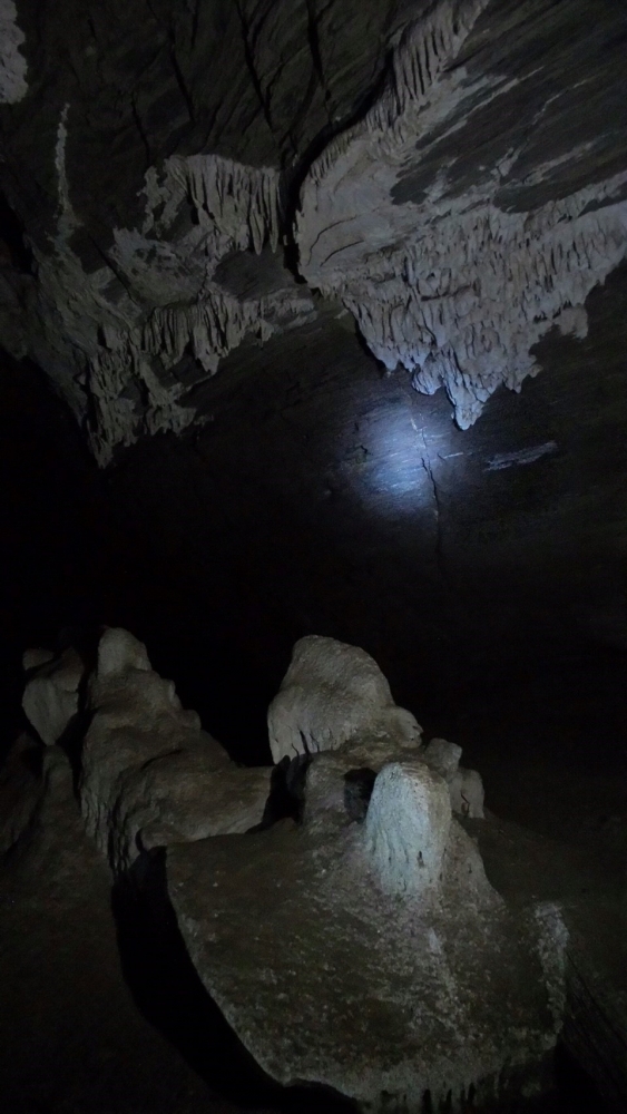 เดินไปเดินมาเห็นป้ายทางออก เพราะสาดไฟไปเจอพอดี เดินต่อสิค่ะ แต่... เอ๊ะ+++ อ้าว!!!! ทางไหนว้า ได้ยินเจ้าหน้าที่บอกแว่วๆ ว่าทางออกจะเห็นแสงสว่างลอดมาให้เห็นแล้วเดินออกไปทางนั้น หันรอบ 360 องศา ไหงไม่เห็นแสงทางสว่างเลย เอาไงหละที่นี้ น่านไง!!! มีกลุ่มนักท่องเที่ยวมาอีกแล้ว