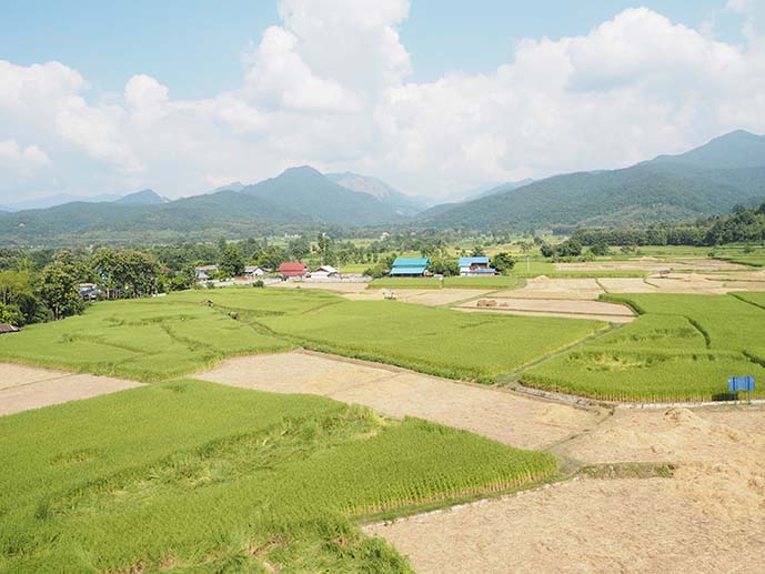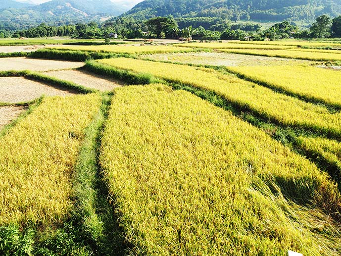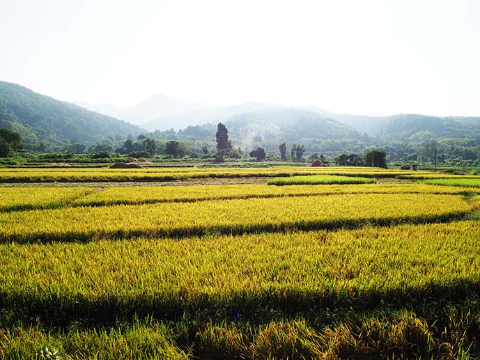 ส่วนทุ่งนาที่คาดหวังไว้ก็นับว่ายังโชคดีที่มาทันก่อนเกี่ยวข้าว คือวันที่มาเนี่ยเขาก็กำลังเก็บเกี่ยวกันแหละ เพียงแต่ยังเก็บไม่หมด เลยยังพอมีเหลือไว้ให้ยลโฉมกันบ้าง เค..พอใจแหละ ^ ^