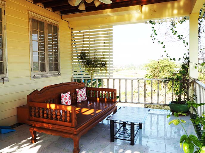 บริเวณหน้าบ้าน ไว้นั่งจกข้าวและเม้ามอย