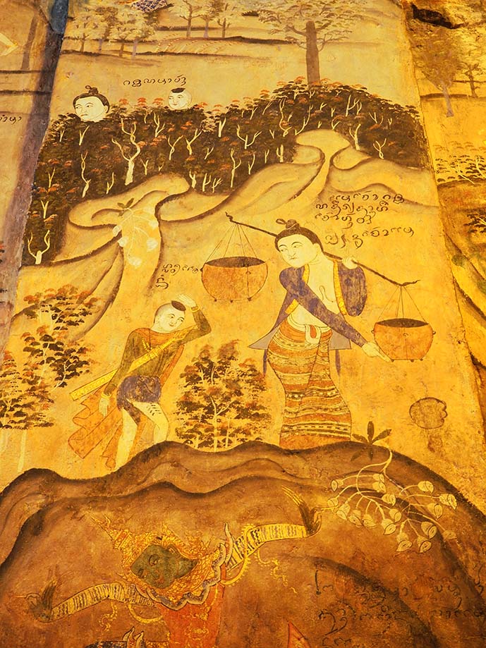 ภาพจิตรกรรมฝาผนังแสดงเรื่องราวชาดก ตำนานพื้นบ้านและวิถีชีวิตชาวน่านในอดีต