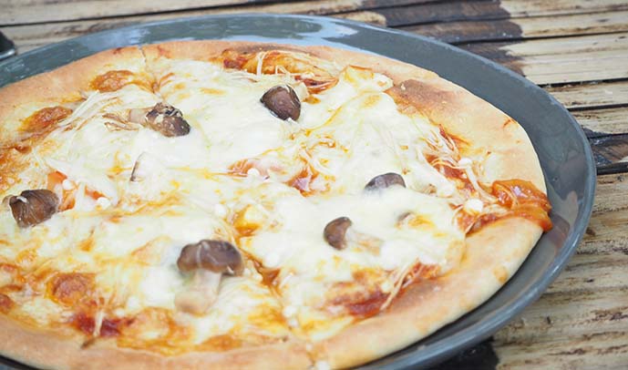 เหตุผลนึงที่เราอยากมาที่นี่เพราะเราอยากกินสิ่งนี้ "พิซซ่าหน้าเห็ด" อร่อยสมคำร่ำลือ