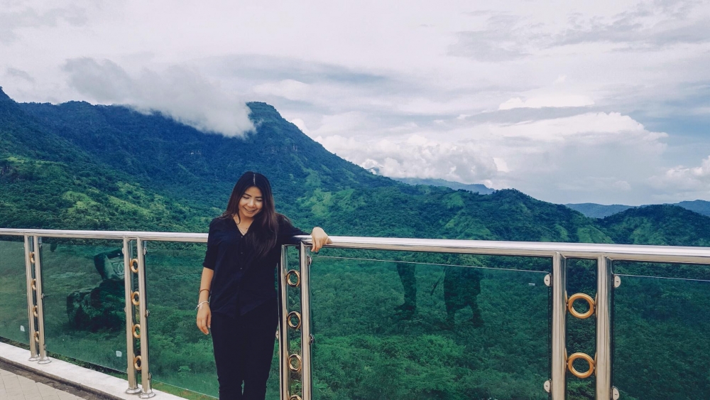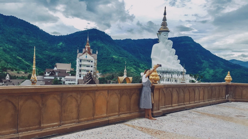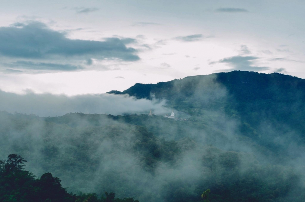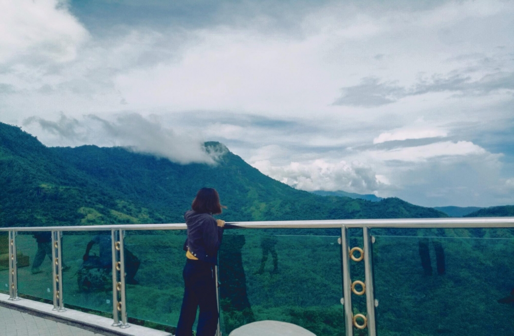 เดินขึ้นด้านบนนี้สามารถมองเห็นวิวทิวทัศน์ได้แบบ 360 องศาเลยก็ว่าได้ มองเห็นภูเขาน้อยใหญ่ตั้งเรียงรายสลับซับซ้อนกันไป มีลมเบาๆ คอยพัดผ่านมาเรื่อยๆ เหล่าเมฆ หมอก เองก็เคลื่อนตัวไปมาตามลม
