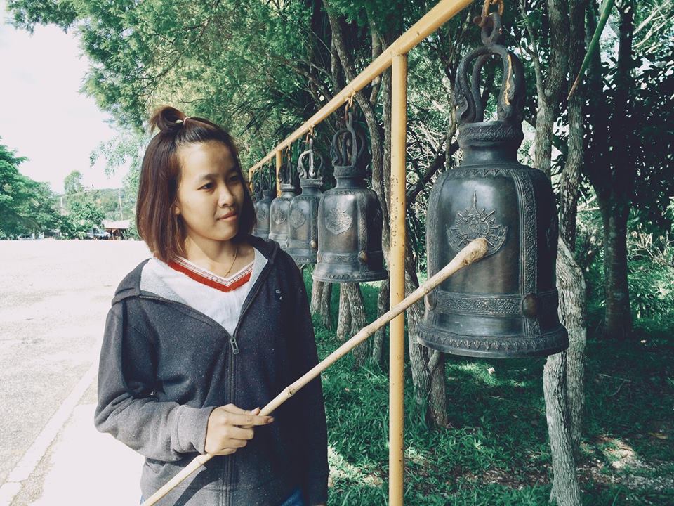 ตรงทางเดินขึ้นพระธาตุฯ จะมีระฆังแขวนเรียงรายยาวลงไปจนถึงด้านล่าง ว่ากันว่าใครแวะมาสักการะอย่าลืมตีระฆังที่ให้ครบทุกใบ เพราะอายุจะยืนยาวอีกหลายปี