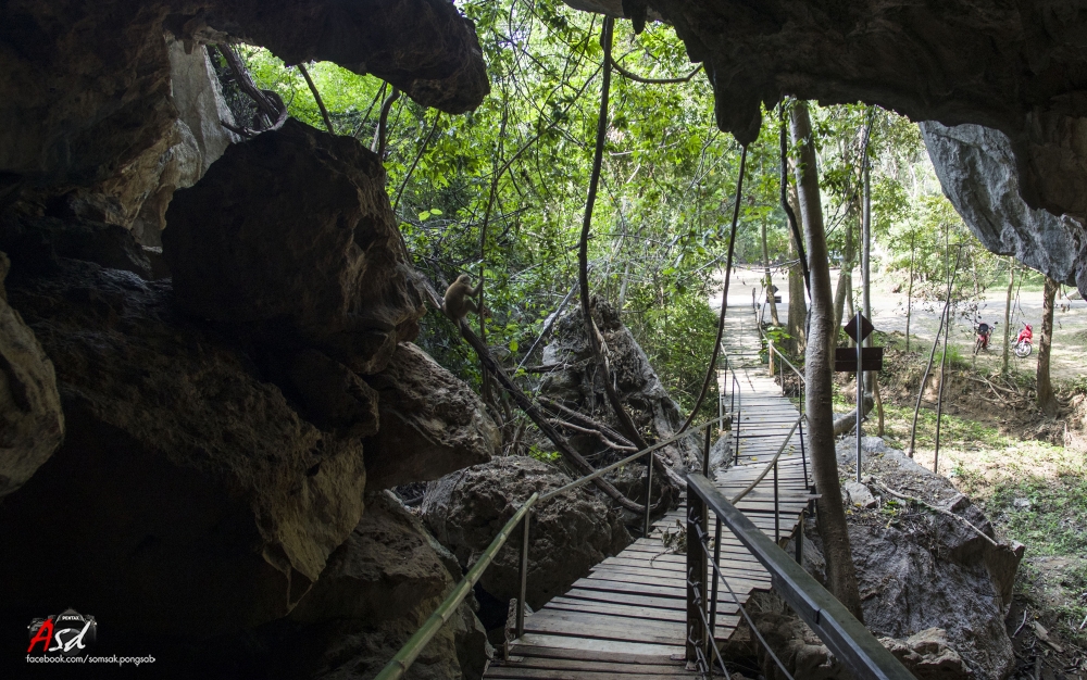 แล้วก็ถ้ำลอดในลำดับถัดไป ถ้ำลอดลิงเยอะ และค่อนข้างดุ พยายามอย่าไปยุ่งกับเขานะครับ เดินเฉยๆ เข้าไปในถ้ำ ไม่ไกลก็จะโผล่วัดถ้ำลอดอยู่อีกด้านหนึ่ง