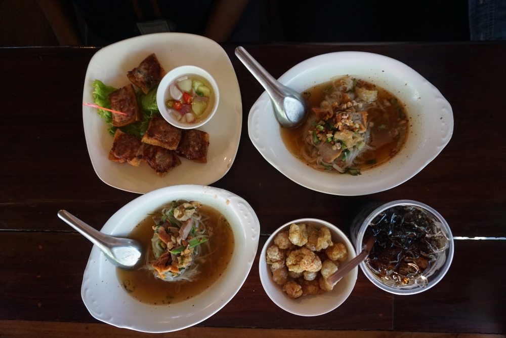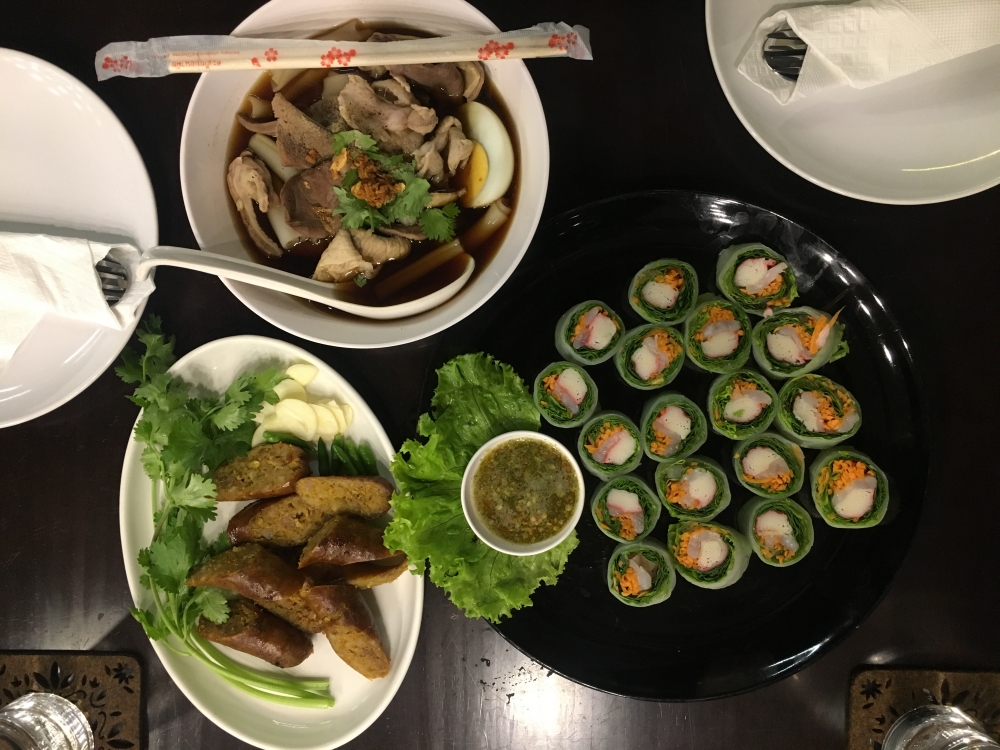 เมนูที่เราสั่งในมื้อนี้คือ ไส้อั่ว ก๋วยจั๊บ และปอเปี๊ยสด(เหมือนก๋วยเตี๋ยวลุยสวน)