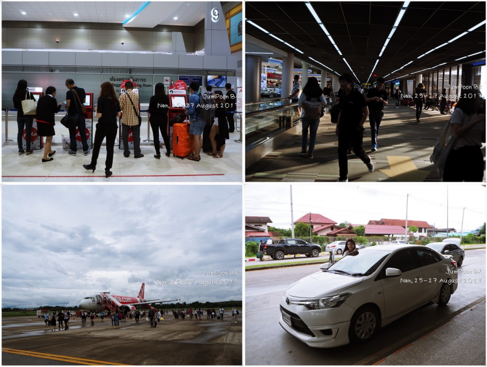 เราออกจาก Siamaze ตอนตีห้า นั่งแท็กซี่ไปดอนเมือง ใช้เวลา 30 นาที ก็ถึงแล้ว เราออกเร็วเพราะไม่มั่นใจเรื่องจราจร ถึงเร็วไว้ก่อน ปลอดภัย ไม่ตกเครื่อง เราไปเจอเพื่อนร่วมทริปที่ดอนเมือง นั่งเจ้าหางแดงไปถึงสนามบินน่านตอนใกล้ๆ 9 โมง ไปรับรถเช่าของ JM Carrent รถยนต์ Vios ค่าเช่าวันละ 800 บาท เรากลับวันอาทิตย์ตอนเช้า เลยคิดค่าเช่า 2 วัน ค่ารถ 1,600 บาท บวกค่าน้ำมัน 700 บาทที่เรากับเพื่อนไปตะลอนกันทั่วเมืองน่าน เดี๋ยวเราค่อยๆ ทยอยเล่าไปนะว่าไปไหนบ้าง