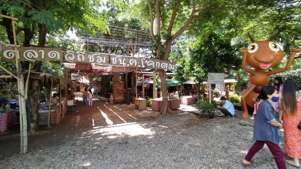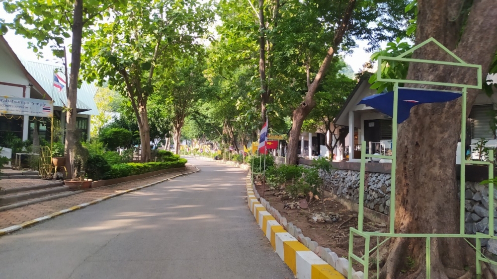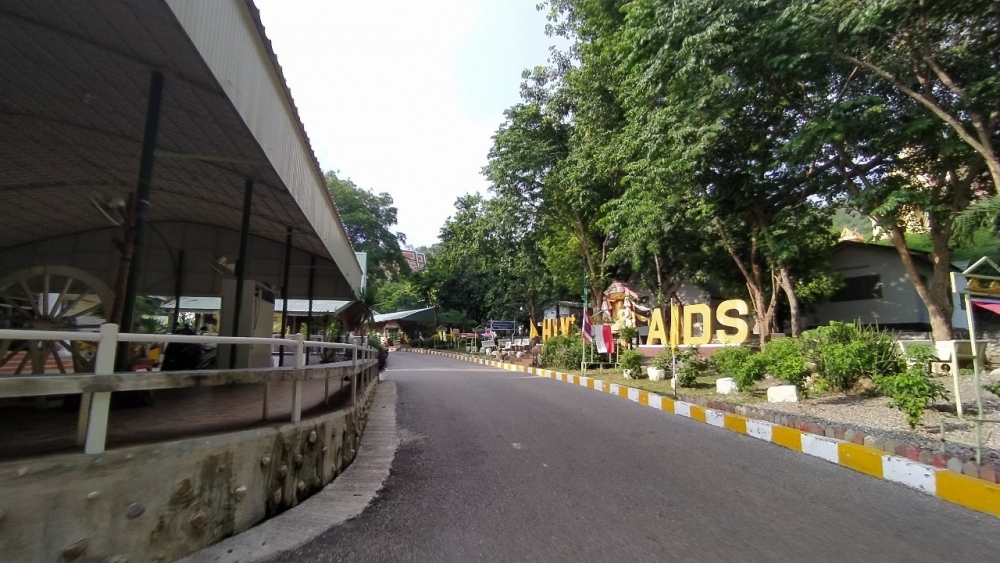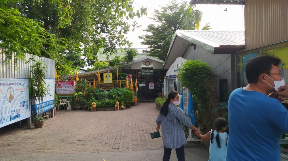 ไม่นานก็ถึง บรรยากาศในวัดเงียบสงบมาก เห็นเฉพาะเจ้าหน้าที่ของวัดกำลังจัดซุ้มเก้าอี้และสถานที่จัดงานอยู่ จู่ๆเดอะแก๊งฯ ก็รู้สึกตื่นเต้นอย่างบอกไม่ถูก รีบจอดรถ เดินวนแบบ งง งง อยู่บริเวณลานจอดรถ มองไปรอบๆ วัดมีพื้นที่ค่อนข้างกว้างขวาง เดินมุ่งหาเจ้าหน้าที่ บุกไปถึงร้านที่จัดจำหน่ายข้าวสาร เรียกหาสอบถามเจ้าหน้าที่>>> จะไปทำบุญและซื้อของตรงไหนคะ??? ได้ความว่า ร้านค้าปิดแล้ว แต่อาคารรับบริจาคยังเปิดอยู่ และสามารถเข้าเยี่ยมผู้ป่วยที่ติดเชื้อ HIV ได้