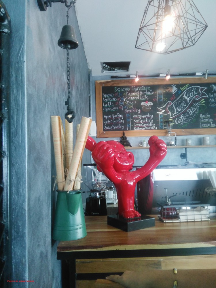 อยู่เส้นโลกีย์ (ของสระบุรี) ถ้ามาจาก กทม. เลี้ยวซ้ายไปซอยโรงแรมเกี่ยวอัน ขับไปเรื่อยจนถึงแยก เลี้ยวซ้ายอีกครั้ง ขับไปเรื่อยๆ เลยหมู่บ้านไปหน่อยนึง ร้านเป็นห้องแถวเล็กๆ ตบแต่งแอบเท่ด้วยสีเทาที่ผนังแล้ววาดด้วยสีขาว ตัดกับลูกกรงเหล็กสีเทาเช่นกัน มีตุ๊กตาสีแดงอยู่ที่เคาน์เตอร์ เมนูได้แก่ฮันนี่โทส คือมันมีความใหญ่โต แบบกินคนเดียวไม่หมดแน่ๆ
