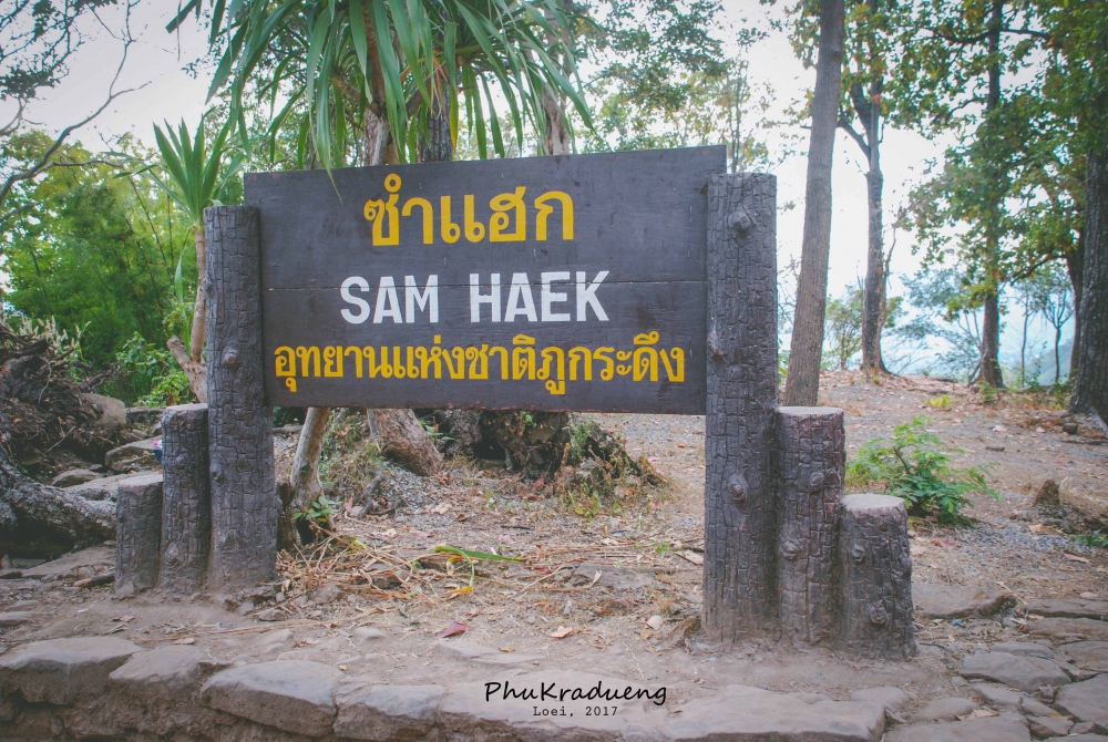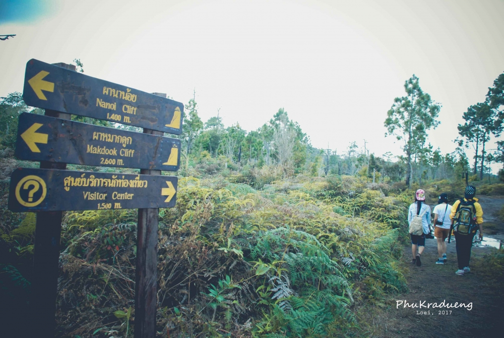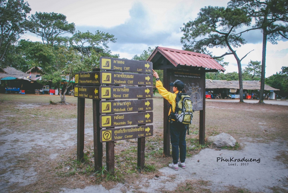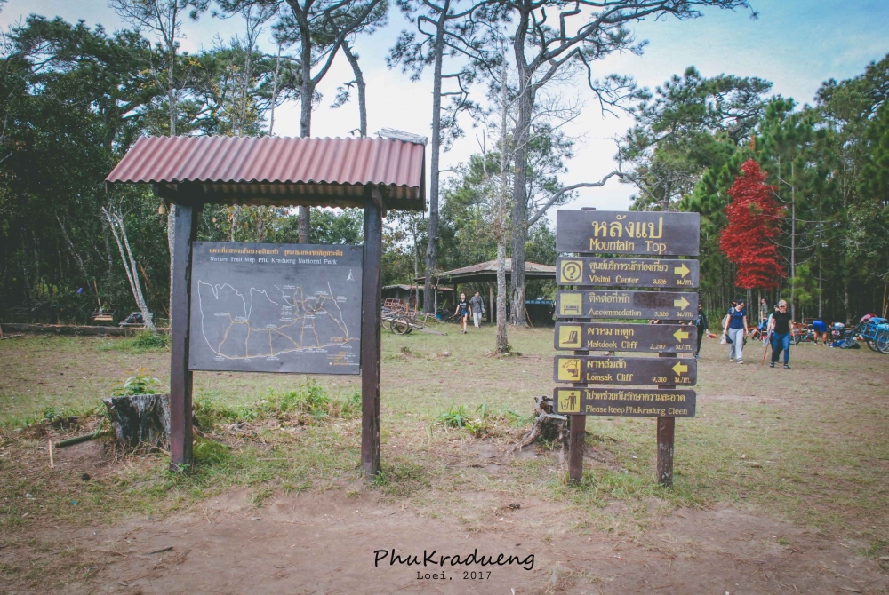ถ่ายภาพเป็นที่ระลึกกับป้ายกันหน่อย ถ้าไม่ได้ถ่ายรูปคู่กับป้ายที่อยู่ตรง "หลังแป" เหมือนไม่ได้มาภูกระดึง