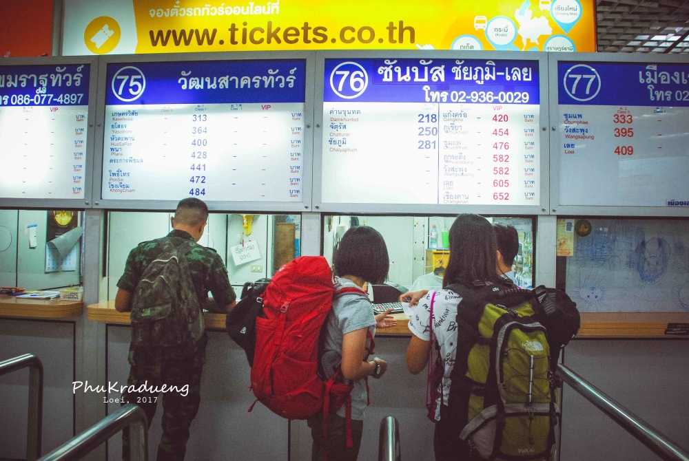 หมายเหตุ : ลงรถที่ผานกเค้า จากนั้นต่อรถสองแถวจากผานกเค้า - ถึงอุทยานแห่งชาติภูกระดึง ราคา 30 บาท/คน