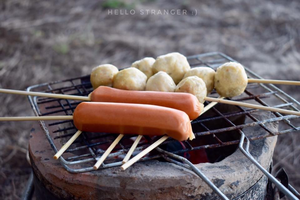 อาหารมื้อเย็นของเรา ข้าวสวยกับลูกชิ้นปิ้ง