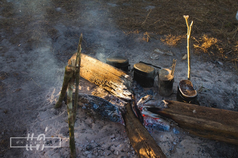 หยุดพักนั่งทอดขา พักไปเล่นไป หันไปเห็นพี่เจ้าหน้าที่ที่มากับเราเกิดสงสัย เลยถามไปว่าทำไมต้องพกปืนด้วยครับ