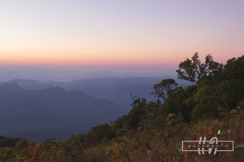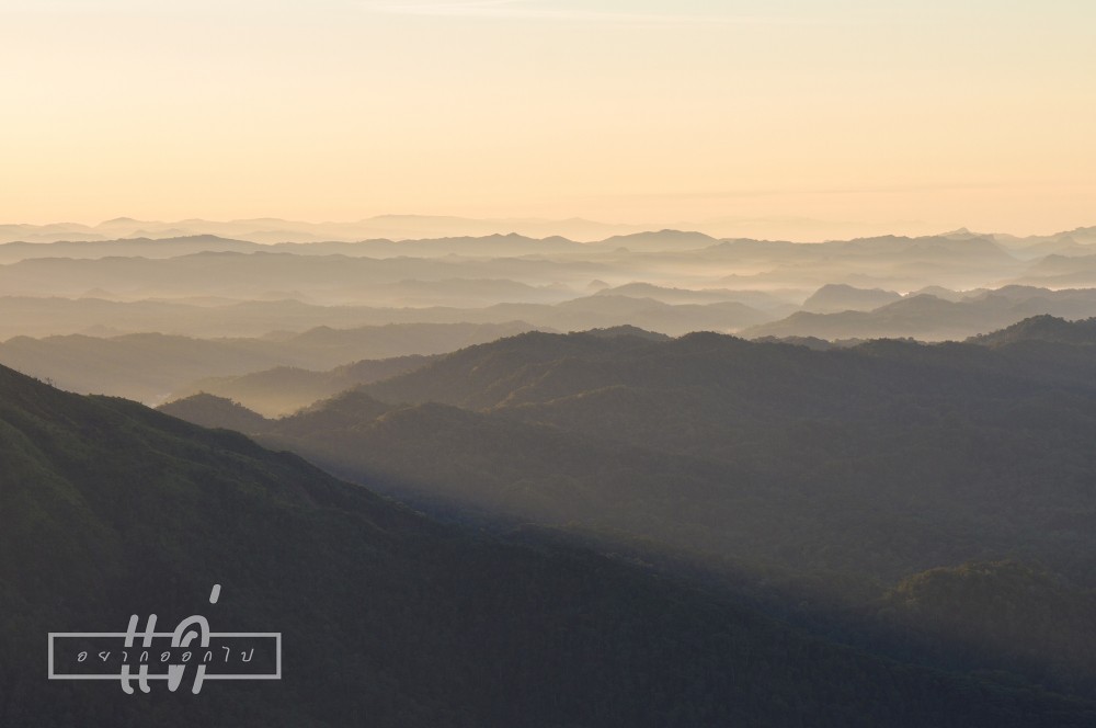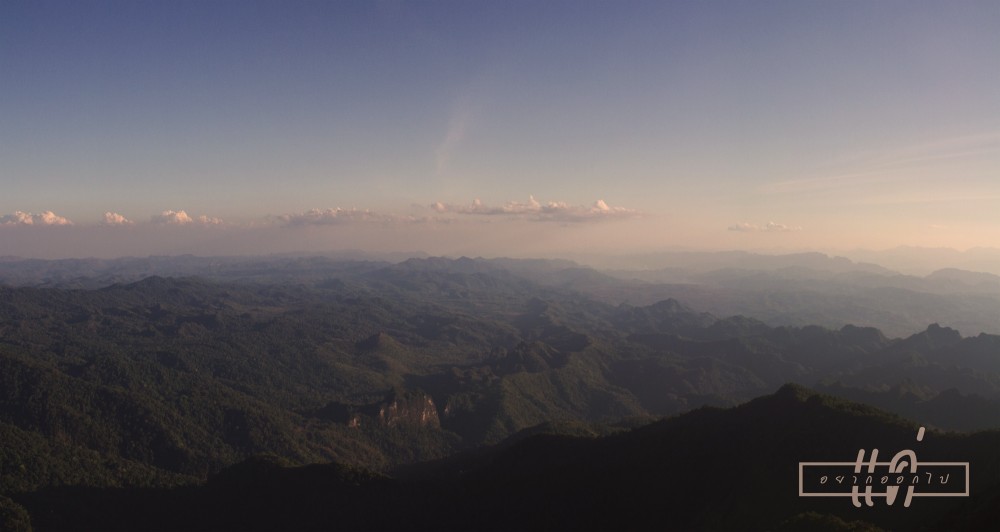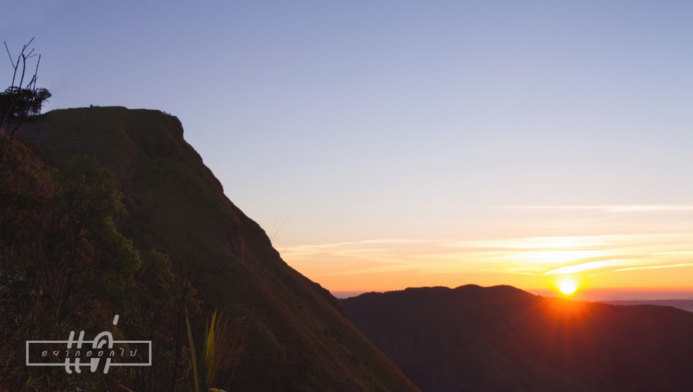 เเดดร้อนเริ่มหุบ ไว้เวลาออกจากเต้นท์ มองออกไปทางซ้ายเห็นเขาสันหนอกวัว