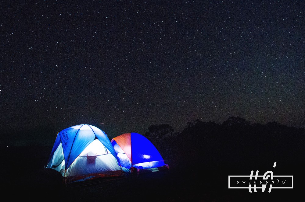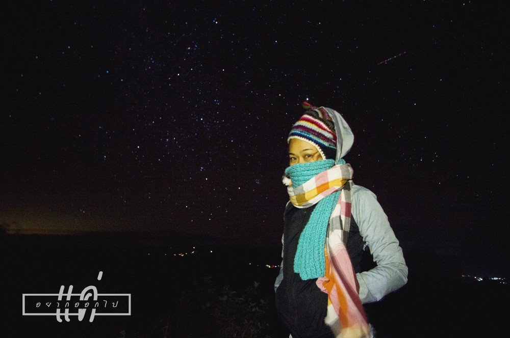 ฟ้าหมดแสงมืดสนิท ดวงดาวเต็มท้องฟ้า จุดกางเต้นท์ลมแรงมาก อุณหภูมิราวๆ 18 ํ แต่ด้วยลม ทำให้หนาวเย็นขึ้นทวีคูณ