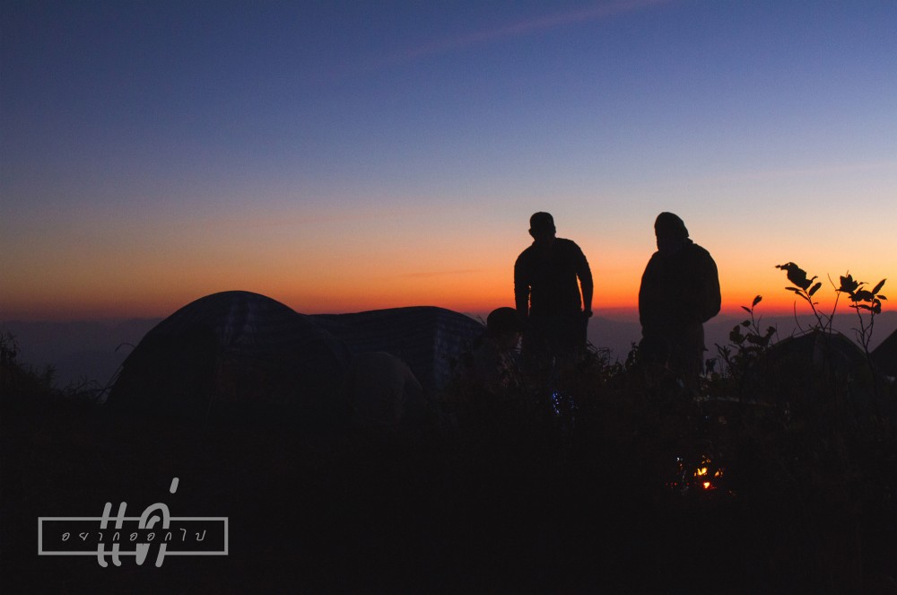 เผลอแปปเดียวฟ้ามืด สีฟ้าตอนนี้สวยใสเชียว แต่ต้องรีบเดินลงไปจุดกางเต้นท์ก่อนจะมืดสนิท แล้วจะมองทางไม่เห็นเอา
