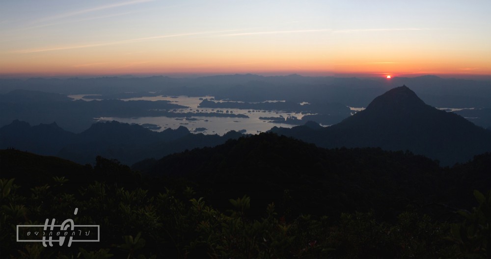 มาทันก่อนเวลานัดเล็กน้อย แสงสุดท้ายสาดแสงลงกระทบผิวน้ำทะเลสาบเขื่อนวชิราลงกรณ์ แล้วค่อยๆ ลับขอบเขาไป