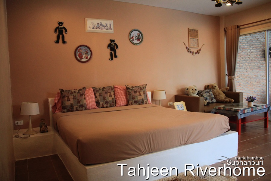 " รีสอร์ทกึ่งโฮมสเตย์ริมสายน้ำท่าจีน สุพรรณบุรี ตกแต่งน่ารักสไตล์ ฟาร์มเฮาส์สีลูกกวาด เน้นสีสันสดใส ท่าจีนริเวอร์โฮมเกิดจากความรักในชนบทของครอบครัวเราเลยสร้างที่นี้ขึ้นไว้สำหรับเป็นบ้านพักผ่อนของครอบครัว เพื่อนฝูง และเพื่อนที่รักการท่องเที่ยว ที่นี้เพื่อน ๆ จะรู้สึกอบอุ่นแบบครอบครัว เป็นกันเอง ท่าจีนริเวอร์โฮม ยังอยู่ใกล้แหล่งท่องเที่ยวมากมายของจังหวัดสุพรรณบุรี ไม่ว่าจะเป็น บึงฉวาก ตลาดร้อยปีสามชุก วัดวาอารามมากมาย และ ที่ท่องเที่ยวอีกมากมายของสุพรรณ " credit : Tahjeen RiverHome FB