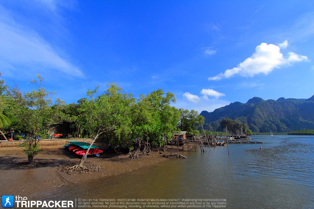เราเริ่มเส้นทางของการพายคายัคด้วยเส้นทางของป่าชายเลนที่มีความอุดมสมบูรณ์ ของป่าโกงกาง และระบบนิเวศน์ที่อยู่กันอย่างพึ่งอาศัย เกื้อกูลกันอย่างน่าทึ่ง หลังจากที่เราพายคายัคไปตามเส้นทางที่คดเคี้ยวไปได้ซักระยะหนึ่ง เราก็สังเกตุเห็นว่าน้ำในบริเวณนี้ไม่ได้ใสเหมือนทะเลด้านนอก และยังมีคราบคล้ายคราบน้ำมันลอยอยู่บนผิวน้ำ ซึ่งพี่ไกด์ก็ได้อธิบายให้เราได้ทราบว่า คราบเหล่านี้เป็นของเสียที่เกิดจากการที่ต้นโกงกางเปลี่ยนน้ำเค็มให้กลาย เป็นน้ำจืด ดังนั้นคราบที่เห็นเหล่านี้จึงเป็นคราบของเกลือที่ถูกรากของต้นโกงกางสกัด ออกมานั้นเอง ด้วยคุณสมบัติพิเศษข้อนี้เองที่ทำให้ต้นโกงกางสามารถอาศัยอยู่ในน้ำเค็มได้ ซึ่งหลังจากได้ฟังคำอธิบายของพี่ไกด์แล้ว ก็ทำให้เราได้รับรู้ถึงความมหัศจรรย์ของสิ่งมีชีวิตที่ต้องต่อสู้ ดิ้นรนเพื่อความอยู่รอดไม่ต่างจากคนเราซักเท่าไหร่นัก และทำให้เรารู้สึกรักและหวงแหนธรรมชาติมากขึ้นไปอีก