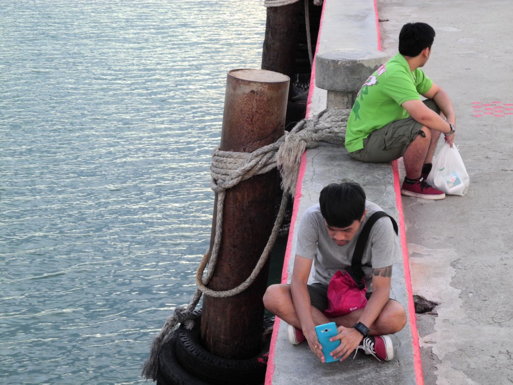 และพอได้ของกินเรียบร้อยก็เดินกลับมาที่ปลายสะพานเช่นเดิม เพื่อนั่งชมบรรยากาศดีๆของที่นี่