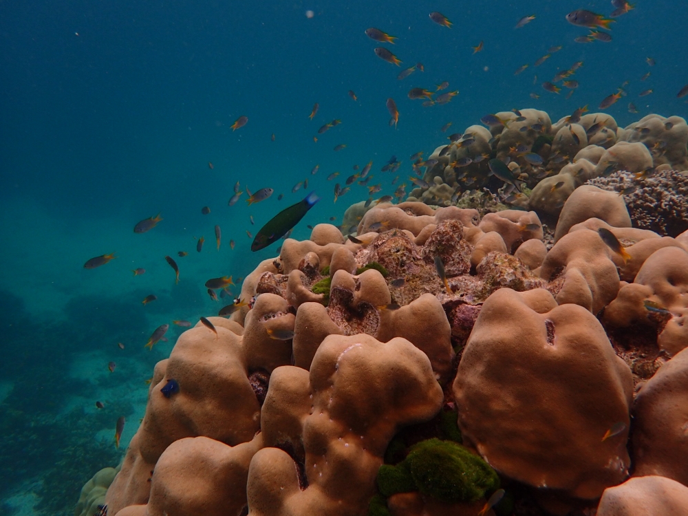 ปะการังโขดก้อนใหญ่ๆ เทียบให้เห็นกับคนเลยค่ะ เสื้อเหลืองๆนั้นพี่พฤกษ์เอง ^^