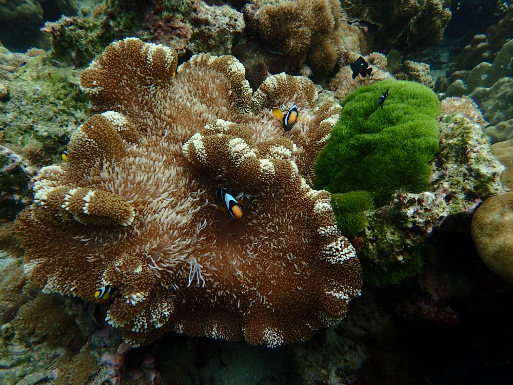 ปลาการ์ตูนลายปล้องกับดอกไม้ทะเลพรม