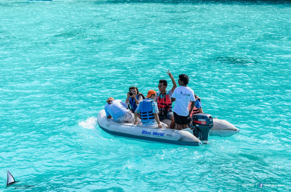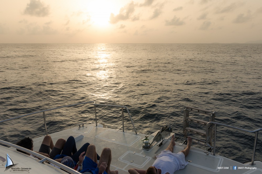 แม้ว่าทริปนี้จะเป็นแบบ join ทัวร์เหมือน ๆ กับทัวร์ไปเกาะด้วย speed boat แบบที่คนไทยคุ้นเคยกัน แต่ทาง Discover catamaran นั้นจำกัดจำนวนนักท่องเที่ยวต่อรอบเพียงราว ๆ 15-20 คนเท่านั้น เพื่อให้สามารถบริการได้เต็มที่ และนี่เป็นเหตุผลว่าทำไมช่างภาพแบบผมมีความสุขเป็นที่สุด เพราะจะได้เดินถ่ายภาพรอบ ๆ เรือได้อย่างสะดวกตลอดเวลา ไม่เหมือน Speed boat ที่ค่อนข้างมีพื้นที่จำกัด แต่จำนวนนักท่องเที่ยวมักจะเยอะจนเต็มลำเรือ
