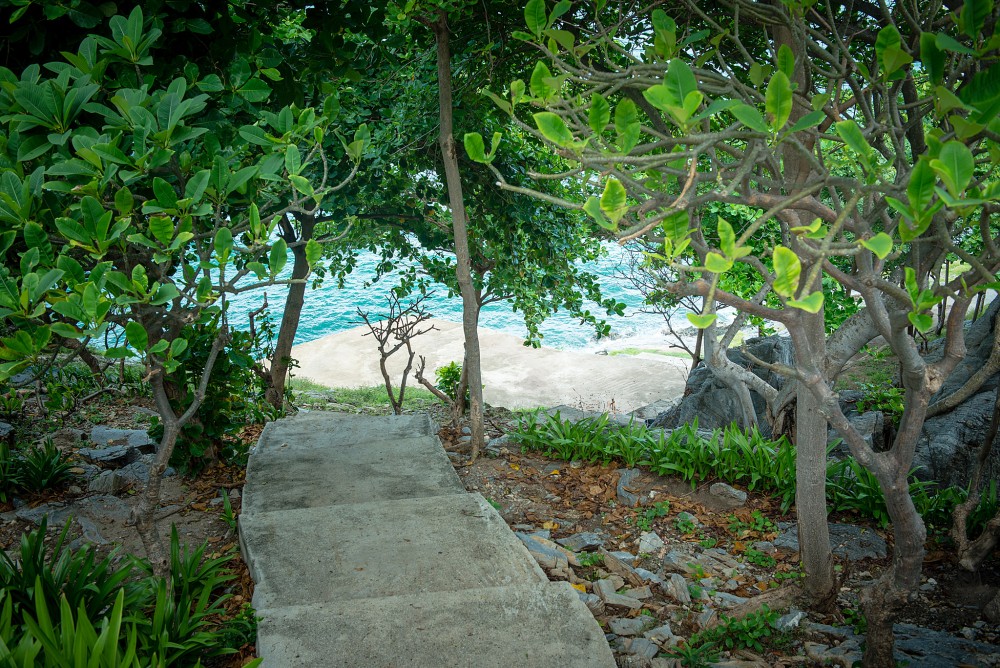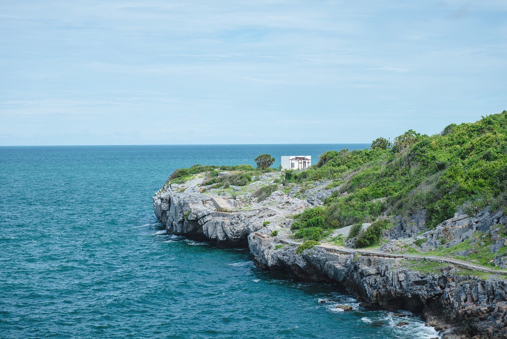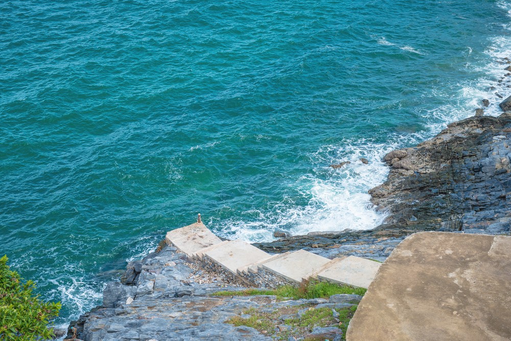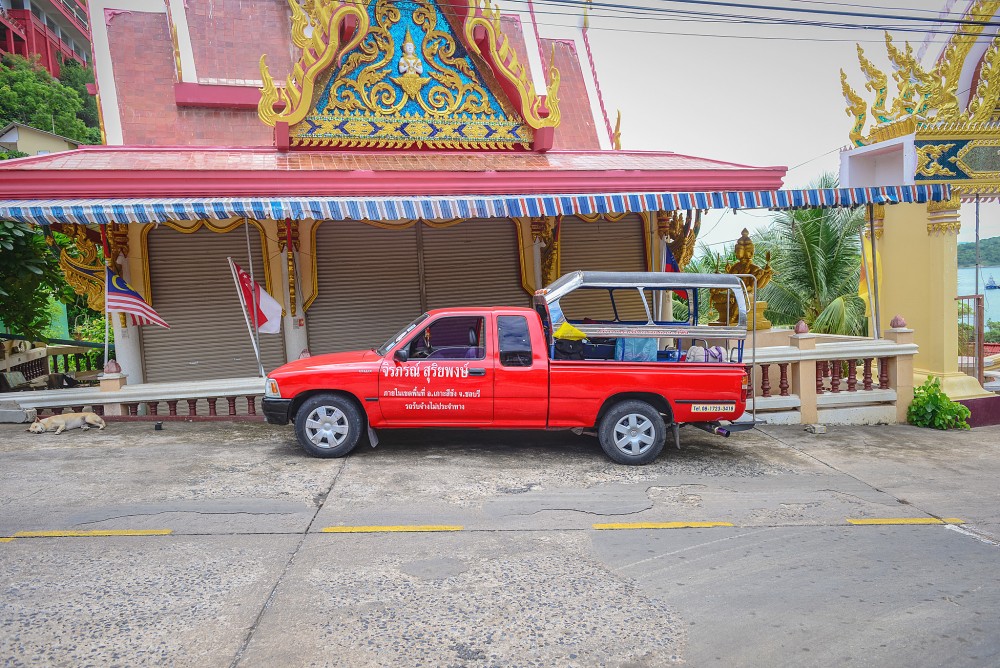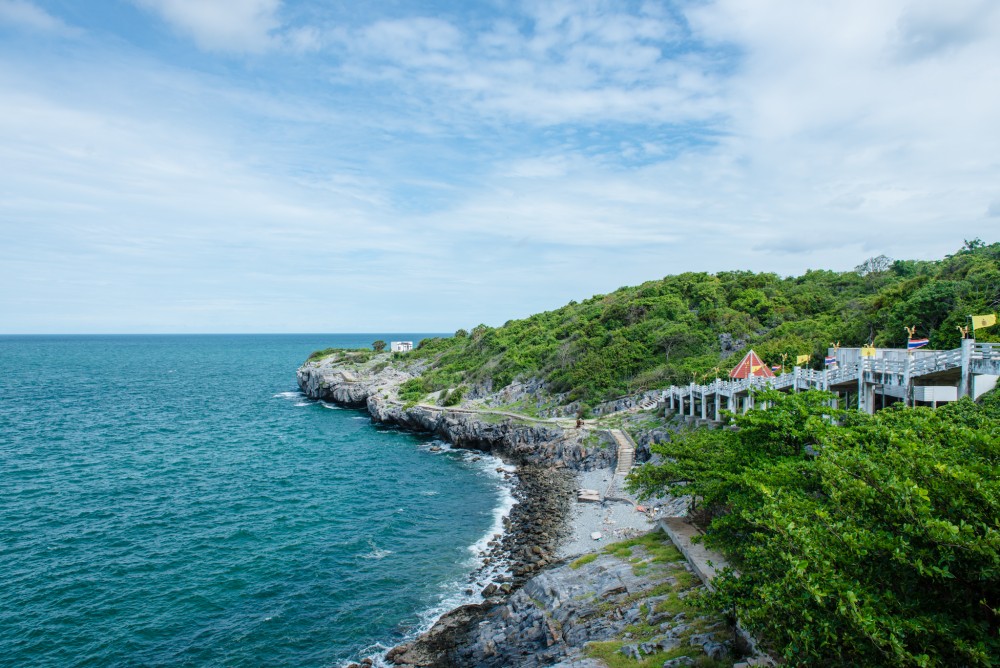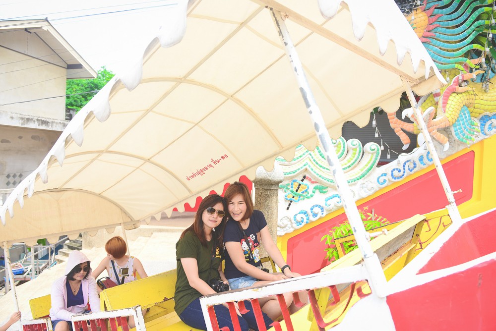 จุดที่ 1 เจ้าพ่อเขาใหญ่ และศาลเจ้าแม่กวนอิม ที่นี่มีรถรางให้ขึ้นฟรี ทำบุญตามศรัทธา ด้านบนมีสิ่งศักดิ์สิทธิ์ให้สักการะ และที่พลาดไม่ได้ มีจุดชมวิวที่เห็นชุมชนชาวเกาะฯ และท่าเรือชัดเจน