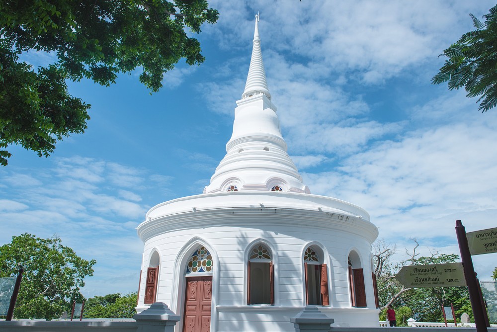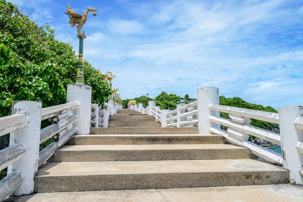 จุดที่ 2 มณฑปรอยพระพุทธบาท อยู่สูงขึ้นไปบนยอดเขาเดียวกับศาลเจ้าพ่อเขาใหญ่ รัชกาลที่ 5 ทรงอัญเชิญมาประดิษฐานไว้ บนยอดเขาเป็นจุดชมทิวทัศน์ทะเลได้โดยรอบ ทางขึ้นเขาค่อนข้างชัน หากขี่มอเตอร์ไซค์ควรระมัดระวัง เพราะเจอมากับตัวแว้ววว...รถสองแถวขึ้นไม่ไหว ต้องลงเดินกันคร๊า 555+++