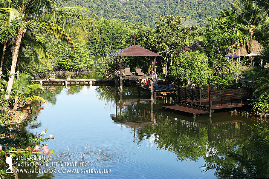 ส่วนภายในรีสอร์ทตกแต่งรมรื่นโอบล้อมด้วยป่าชายเลน มาพักที่นี่จะไม่เหมือนการมาเที่ยวตามชายหาดเกาะช้างนะ จะให้ดีต้องตั้งใจมาเที่ยวเพื่อสุขภาพ ทำสปานวดบำบัดต่างๆ อบสมุนไพร เล่นโยคะ ดีท็อกซ์ล้างพิษ ทานอาหารปลอดสารและเครื่องดื่มที่มีประโยชน์ต่อร่างกาย ผมว่าเป็นอะไรที่เก๋ดีแท้