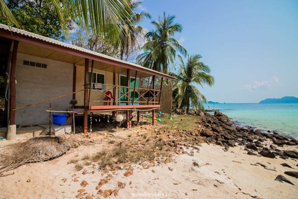 ถ้าพูดถึงทรงบ้าน หลังนี้สวยสุดจริงๆ ส่วนหน้าหาดช่วงกลางวันจะมีนักท่องเที่ยวจากเกาะช้างมาดำน้ำ มันก็เลยจะไม่ค่อยเป็นส่วนตัวเท่าไร แต่วิวดีจริงๆ หน้าหาดสวย หลังนี้คืนล่ะ 700 บาท