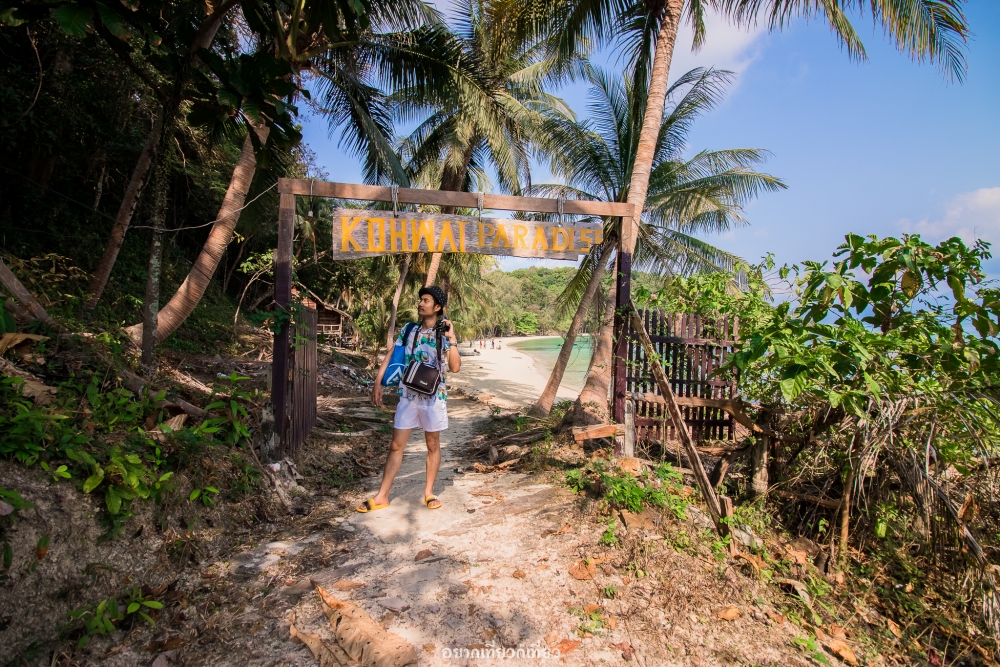 ป้าย kohwai paradise เป็นสัญลักษณ์ของที่พัก เค้าบอกว่าใครมาที่นี่ก็ต้องถ่ายรูปกับป้ายนี้ สงสัยอยู่เหมือนกันว่าป้ายนี้มีอะไร แต่เราก็ถ่ายมานะ 5555 จะว่าไปก็เท่ดี แหะๆ