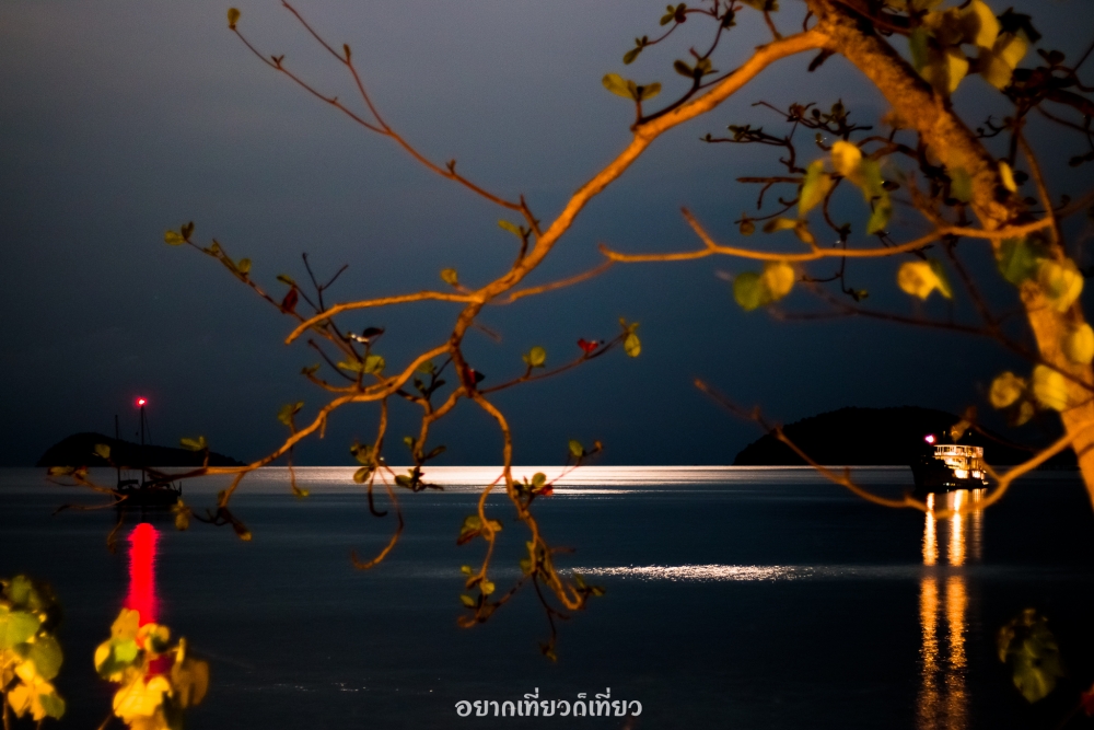 ท้องทะเลยามค่ำคืน ดูเงียบสงบ จากหน้าห้องพักได้ยินแต่เพียงเสียงคลื่นกระทบฝั่ง