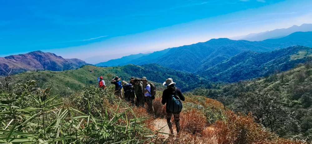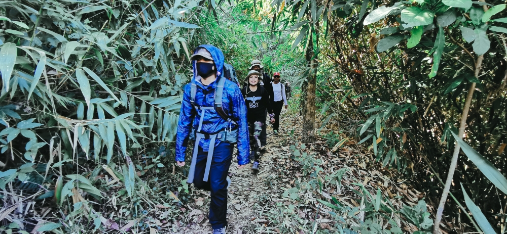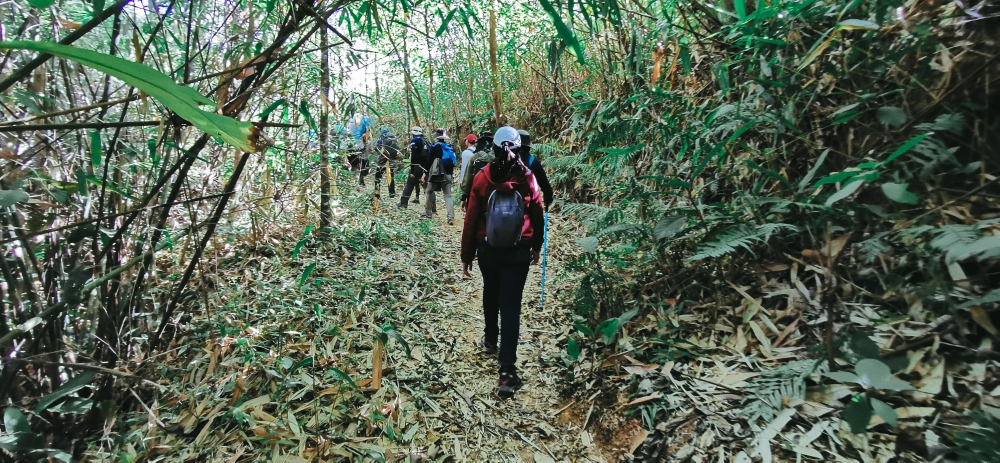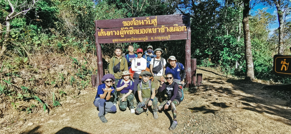 ทีมเราไปกัน 10 คนค่ะ ขับรถออกจากกรุงเทพวันที่ 1 มกราคม เพื่อไปนอนที่หมู่บ้านอิต่อง 1 คืน เช้าวันที่ 2 มกราคมเราออกจากหมู่บ้านอิต่องตั้งแต่ 6 โมงเช้า เพื่อไปรายงานตัวที่อุทยานทองผาภูมิตรงก่อนจะขึ้นมาหมู่บ้านขับรถราวครึ่งชั่วโมงก็ถึง มารายงานตัวจ่ายตังค่าเข้าค่าเช่าอุปกรณ์ต่างๆกับเจ้าหน้าที่ แล้วก็ขับรถไปที่หมู่บ้านอีต่องเพื่อเอาของไปให้ลูกหาบแบกขึ้นเขา 8.30 น.ทางเจ้าหน้าที่ก็ปล่อยให้นักท่องเที่ยวเดินขึ้นเขาช้างเผือกกันแล้วค่ะ 9.30 น.ไม่มาจุดปล่อยตัวถือว่าคุณสละสิทธิ์ขึ้นเขาช้างเผือกนะค่ะต้องรีบไป ทริปนี้ถือว่ามากับดวงมากค่ะเราขึ้นวันที่ 2 มกราคม ลงเขาวันที่ 3 มกราคม อุทยานแห่งชาติทองผาภูมิปิดวันที่ 4 มกราคม ใครจะอยากพิชิตเขาช้างเผือกก็ต้องรอกันเดือนพฤศจิกายน นะค่ะ