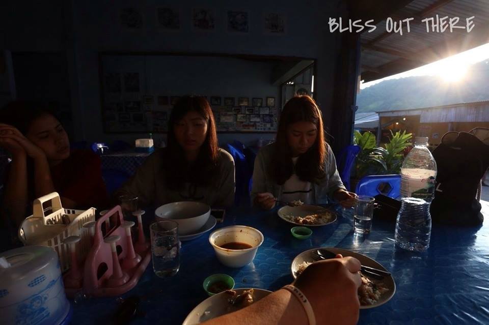 แนะนำว่าก่อนออกเดินทางให้กินข้าวอะไรให้อิ่ม ในหมู่บ้านปิล๊อกเนี่ยแหละมีทั้งร้านข้าว ร้านกาแฟ จัดการซื้อเสบียงให้เรียบร้อย เพราะขึ้นไปแล้วต้องใช้พลังงานเยอะมากจริงๆ เหงื่อนี่ชุ่มค่ะ แต่งตัวคูลไปยังไงสุดท้ายก็ชุ่มค่ะ เพราะฉะนั้นใส่สิ่งที่สบายที่สุดเพื่อความแห้งของร่างกายตัวเองค่ะ หลังจากนั้นเราจะไปพบกับพี่ๆเจ้าหน้าที่และแก๊งลูกหาบได้ที่ร้านขายของขนาด ใหญ่ มีอยู่ร้านเดียวค่ะ เพราะร้านอื่นจะขนาดเล็ก เหมือนจะตลก แต่มันคือเรื่องจริง55555555 ร้านนี้ไม่มีชื่อร้านค่ะแต่ทุกคนจะมารวมพลกันตรงนี้ ขาดเหลืออะไรก็ซื้อได้ที่ร้านนี้ได้เลย ลูกหาบจะขึ้นไปบนเขาตั้งแต่ได้สัมภาระของเราครบ เขาจะนำไปก่อนเลย แล้วเราก็จะไปพร้อมกับเจ้าหน้าที่นำทางตอน8โมงเช้า(บางกลุ่มสายหน่อยก็9โมง)