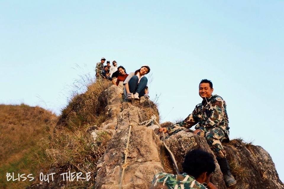 ปกติแล้วเจ้าหน้าที่จะให้ลงจากยอดเขาตอน5โมงหรืออย่างช้าก็5โมงสิบห้า เพราะถ้าลงช้า พระอาทิตย์ตกแล้วจะอันตราย(ขนาดสว่างนี่ยังใจจะวายเลย) แต่วันนั้นหนึ่งในสมาชิกของเราพี่ชายต่างพ่อต่างแม่ผู้ซึ่งมีน้ำหนักตัวร่วม ร้อยกว่าโลกว่าจะขึ้นมาถึงยอดก็5โมงเข้าไปแล้ว เลยได้สิทธิพิเศษอยู่ต่อถึงประมาณ5โมงเกือบครึ่ง เจ้าหน้าที่ก็น่ารักเข้ามาแสดงความยินดีกับพี่เราใหญ่ นี่เป็นตัวอย่างเลยว่าถ้าใจคุณได้ คุณจะทำอะไรก็ได้ พี่เรามาช้าแต่พี่เรามาถึง… “มาอีกมั้ยพี่” “มาแต่ขอปีหน้า” ‘’ปีหน้าพี่ยังจะมาอีกอ่อ มาคนเดียวนะพี่ ไม่มีใครมาแล้วนะ” “…เออ…งั้นกูไม่มาละ”