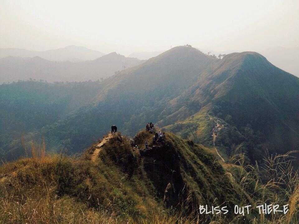 เดินต่อกันอีกหน่อยก็จะถึง “เขาช้างน้อย” เขาลูกเล็กๆที่ปกคลุมไปด้วยหญ้าสีเหลืองทอง คือสวยจริงอ่ะจำได้ขึ้นตาขึ้นใจ สีเหลืองของหญ้ามันตัดกับสีฟ้าของท้องฟ้าและสีน้ำเงินของภูเขาลูกไกลๆได้ แบบดีงามมาก อยากจะนอนทิ้งตัวลงไปบนหญ้า แต่เกรงว่าถ้าทิ้งลงไปมันจะไม่ลุกขึ้นมาแล้ว55555555 เอาเป็นว่าตั้งแต่เขาช้างน้อยไปเนี่ยเริ่มพีคขึ้นเรื่อยๆละ รอชมแล้วกันค่ะ