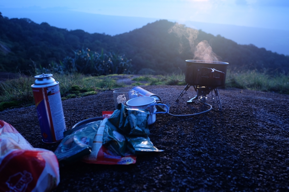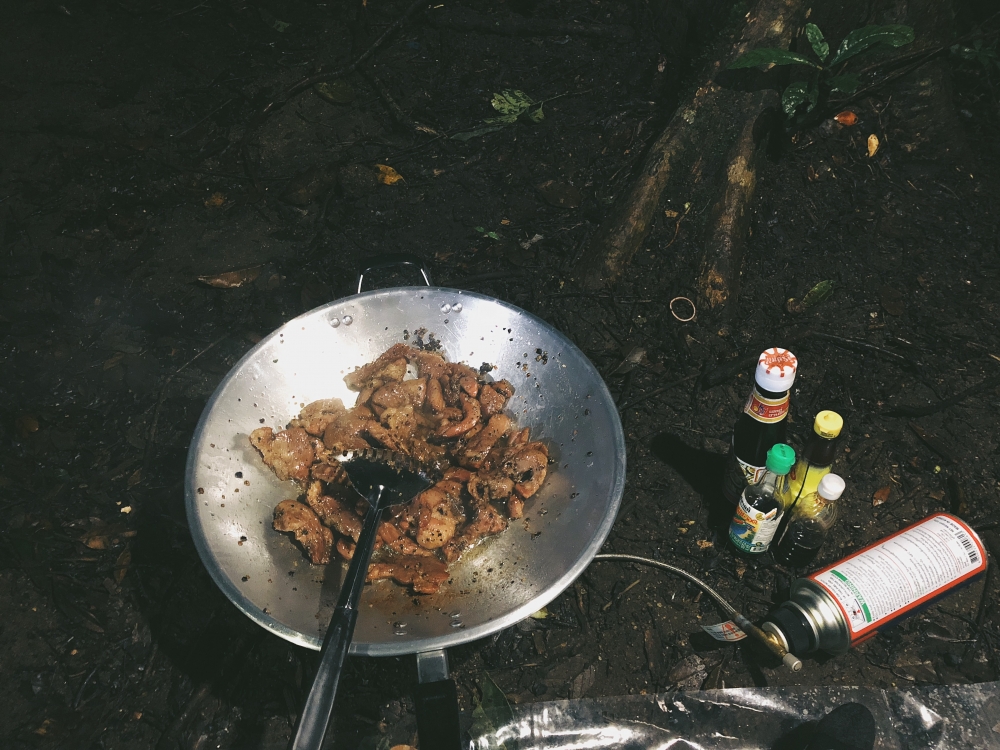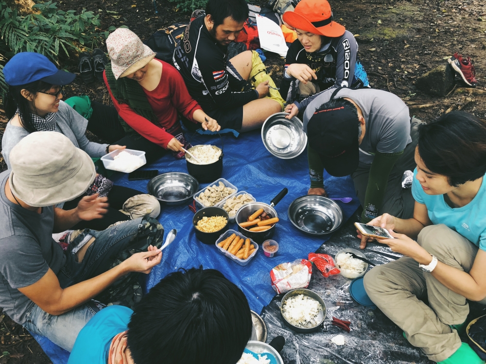 หลังกางเต้นท์เสร็จ ก็มาเตรียมสเบียงกัน มื้อเย็น หลังจากเหน็ดเหนื่อย ต้องอิ่มไว้ก่อน