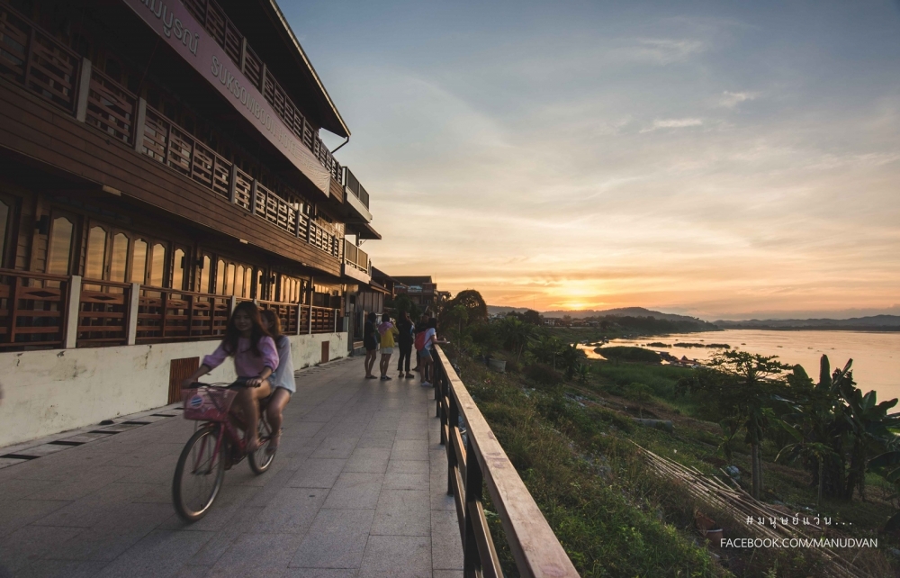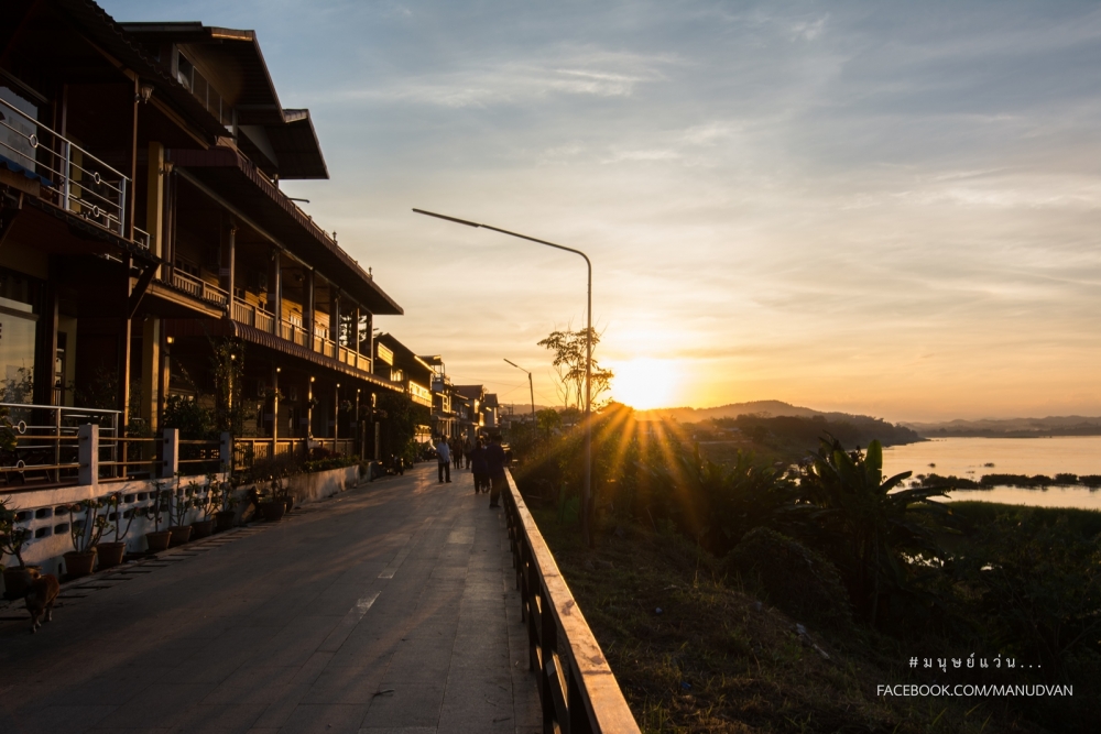 ตอนเย็นพวกเราไปเดินเล่นริมโขง รอดูพระอาทิตย์ตกดิน ลมเย็น ๆ อากาศดี อิจฉาคนเชียงคานจัง ^^ เดินมาซักพักนึงท้องเริ่มร้องอีกแล้ว