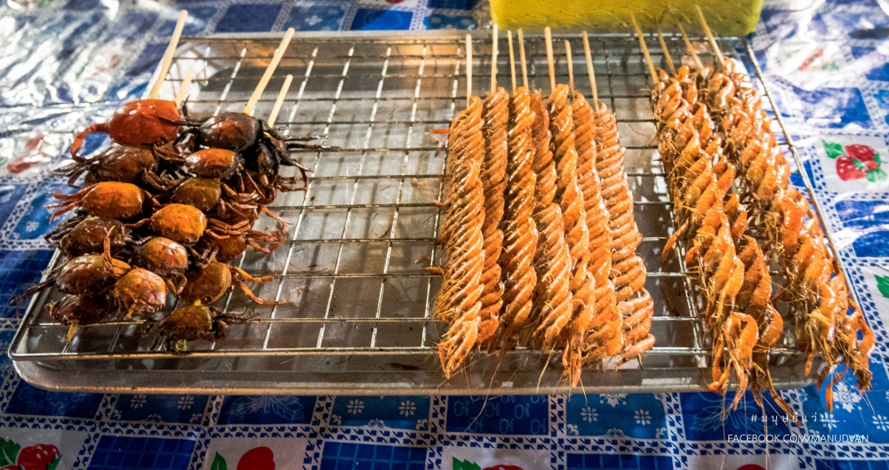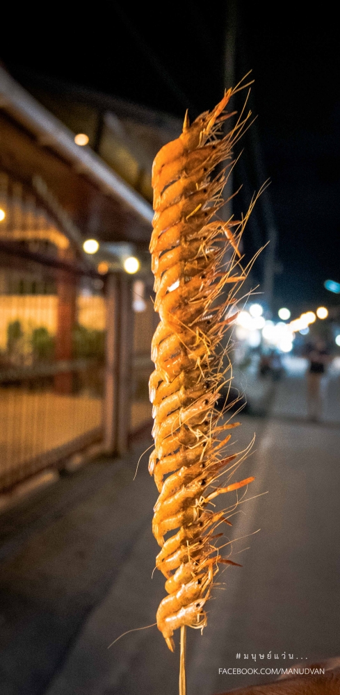 กุ้งแม่น้ำโขงเสียบไม้ ของทานเล่นยอดฮิตที่ทุกรีวิวต้องมี ไม้นี้ราคา 10 บาท วันนั้นเรากินไปหลายไม้ มาก ๆ แต่จะให้เด็ดกว่านี้ ลองขอน้ำจิ้มซีฟู๊ดราดซักหน่อย รับรองกินเพลิน จนรู้ตัวอีกทีก็โดนกุ้งทิ่มปากไปแล้ว :))