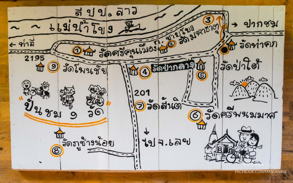 พวกเราลงรถที่หน้าโรงพยาบาลเชียงคาน ซึ่งจะตรงกับถนนศรีเชียงคาน 25 เดินลัดเข้าไปถึงถนนคนเดิน จริง ๆ หากใครไม่อยากเดินไกลก็สามารถใช้บริการรถสกายแลปได้ หรือ กดกริ่งลงที่ซอยของโฮมสเตย์ที่พักได้ครับ