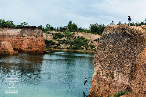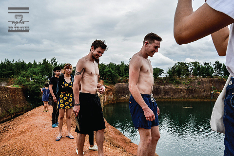 ส่วนบุรุษเพศ 2 คนนี้ นางกำลังจะขึ้นไปกระโดดค่ะ ใช่ค่ะ กระโดดลงไปแบบนี้