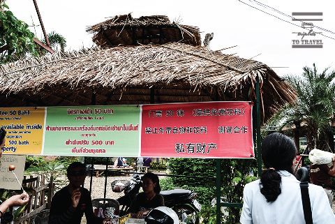 ด้านหน้าทางเข้า มีค่าเข้านะคะ 50 บาท (เก็บตั๋วไว้แลกน้ำสมุนไพรด้วยนะ)