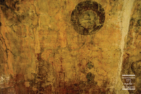 ผนังด้านบนเต็มไปด้วยเรื่องราวที่เล่าไว้ด้วยภาพเขียน อาจจะมีลบเลือนไปบ้างตามกาลเวลา แต่เป็นภาพเขียนที่สวยมากๆ