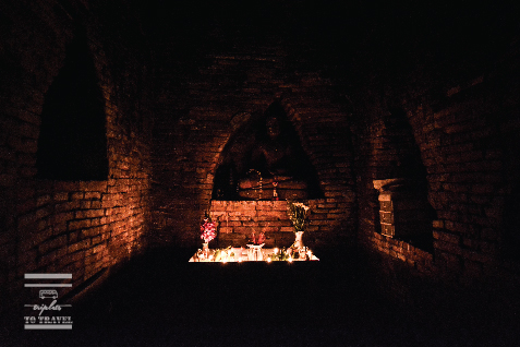 เดินเข้ามาด้านในเราก็จะเจอพระพุทธรูปประดิษฐานอยู่ตามช่องระหว่างทางเดิน มีช่องที่ให้เข้าไปกราบไหว้ได้ค่ะ