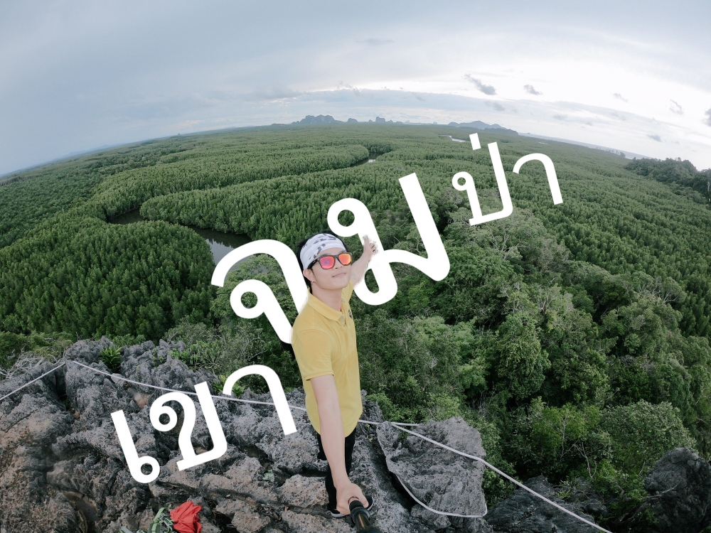 + ต่อไปคือชมจุดชมวิวเขาจมป่า อยู่ห่างจากตัวเมืองตรังประมาณ 40 กิโลเมตร ถ้าจะเปิด GPS หาชื่อไปที่นี้ลอกชื่อตามนี้เลยจ้า (เกาะหัวใจ ล่องแพ แลวิว ชิลเขาจมป่า@ท่าขยง ThaGayong Rafting Restaurant) แหล่งท่องเที่ยวที่นี้ชาวบ้านเป็นคนบริหารและรักษาธรรมชาติกันเอง ซึ่งจะมีเรือหางยาวพาเที่ยวชมเขาจมป่า เรือหางยาวจะเป็นแบบเหมาลำเท้านั้น ลำละ 1,200 บาทนั้นได้ 9 คน แต่เทยไปคนเดียวคือมันค่อนข้างแพงไปและก็เกินงบที่ตั้งไว้ด้วย ทางชาวบ้านเลยถามว่าถ้าเรือหางยาวเล็กๆที่ใช้ไว้หาปลากล้านั้งไหมหละ ถ้านั้งได้ก็คิดลำละ 500 บาท เทยเลยตกลง เรือลำเล็กแต่เร็วเว้อนั้งได้แค่คนขับกับลูกทัวร์1คน รวมแค่ 2 คนเท่านั้น ถ้ามาสองคนก็คงเหมาลำใหญ่เท่านั้น นั้งเรือออกไปประมาณ 15-20 นาทีก็ถึงจุดชมวิวเขาจมป่า ผูกเรืออะไรเสร็จคนขับเรือก็พาเดินขึ้นเขาไปที่จุดชมวิวระยะทาง 1 กิโลเมตร ไม่ชันมากเดินง่ายเทยใช้เวลาเดินขึ้น 15 - 20 นาทีก็ถึงยอดเขาแล้วค่ะ เห็นวิวป่ากงกางสวยเขียวสบายตามากค่ะ ถ่ายรูปหนำใจแล้วน้าคนขับเรือก็พานั้งเรือชมวิวทะเลต่อ น้าแกพานั้งเรือออกไปปากอ่าว ไปชมทะเลแหวก แถวนี้ถ้าโชคดีก็อาจจะได้เจอกับพยูนตัวเป็นๆด้วยนะ