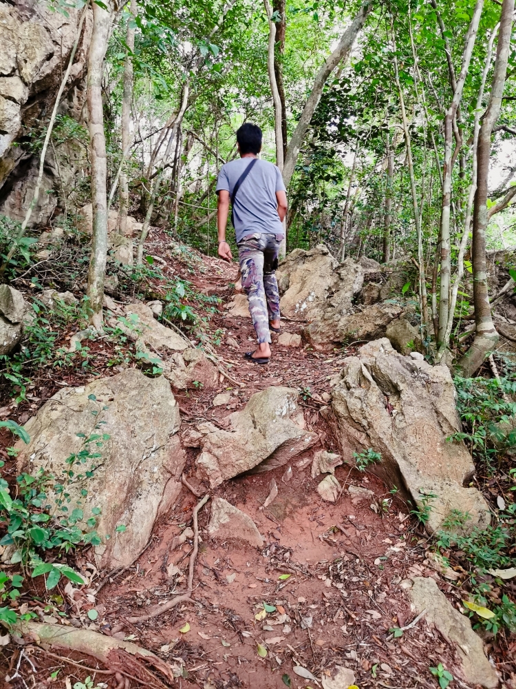 เดินขึ้นเขาประมาณ 1 กิโลเมตรค่ะ ราวๆ 20 นาทีก็ถึงยอดเขา จะได้เห็นวิว 360 องศากันเลยทีเดียว
