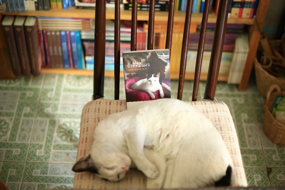 ที่นี่มีหนังสือชื่อ “ยังดีที่มีแมว” หนังสือที่พี่จิ๋วเขียนขึ้นมาเอง แล้วเจ้าแมวตัวนั้นที่พูดถึง ก็คือ “เจ้าเทโพ” แมวของพี่จิ๋วตัวนี้แหละค่ะ พี่จิ๋วบอกว่า เขาเริ่มเขียนเล่มนี้ตั้งแต่เจ้าเทโพยังเด็กๆ จนตอนนี้ก็โตเป็นสาวแล้ว ใครมาก็อย่าลืมแวะไปทักทายเจ้าเทโพกันนะคะ