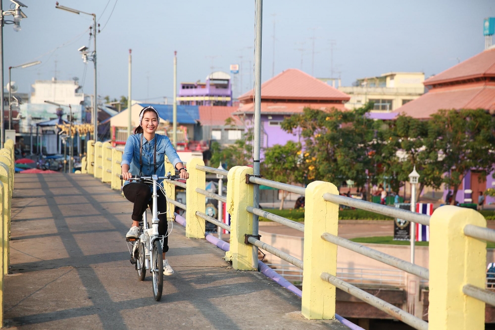 อุทัยธานีมีเส้นทางสวยๆ ให้เราปั่นจักรยานชมวิวอีกหลายเส้น อย่างข้างหลังของโบว์นั้น ก็เป็นสะพานข้ามแม่น้ำสะแกกรัง ฝั่งโน้นจะเป็นตลาดเทศบาลที่เราไปมาเมื่อตอนเช้า และตอนเย็นๆ แบบนี้ก็จะมีถนนคนเดินที่บริเวณตรอกโรงยาด้วย เดี๋ยวเราลองไปเดินเล่นชิวๆ กันดีกว่าค่ะ