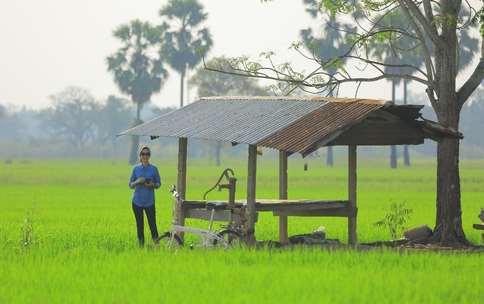 อิ่มท้องแล้วเราก็ออกมาปั่นจักรยานชมวิวทุ่งนาสีเขียว ได้กลิ่นของดิน ได้ยินเสียงลมที่พัดพายอดข้าวสีกัน อากาศที่นี่สดชื่น และบริสุทธิ์มากๆ ไม่แปลกใจเลยว่าทำไมชาวบ้านที่นี่ถึงมีความสุข….
